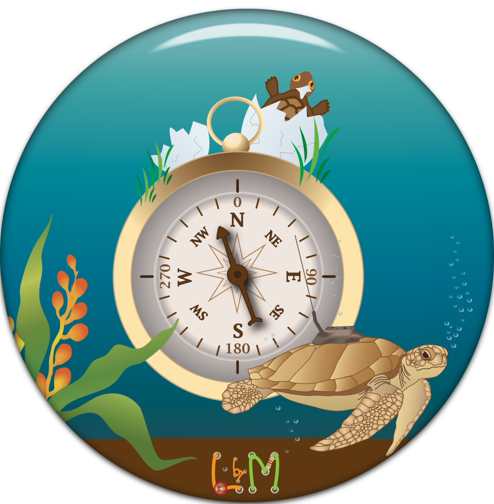 This artwork represents the sea turtle’s life cycle and navigational skills, themes explored throughout Unit 1 of LbyM’s curriculum. In this unit, students learn about ecological cycles while using TurtleLogo, a computer programming language, to create simulations that model migration patterns. Credit: Aurore Simonnet / EdEon