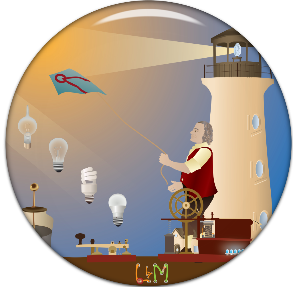 This artwork depicts Benjamin Franklin’s famous kite experiment, which demonstrated that electricity takes the path of least resistance. In Unit 2, students explore the electrical properties of a system that converts electricity into light. Students use coding and computational thinking to create a night light and to communicate using Morse code over long distances. Credit: Aurore Simonnet / EdEon